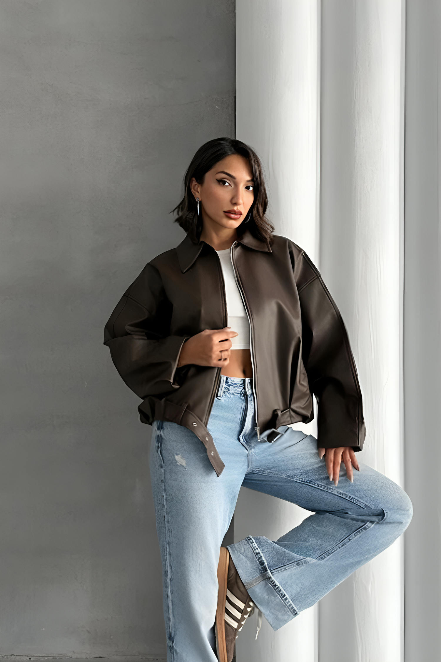 Pièce incontournable de la saison, cette veste en simili cuir conjugue confort et style. Sa coupe oversize et son design épuré en font l’alliée parfaite pour affirmer votre personnalité avec un look résolument moderne.